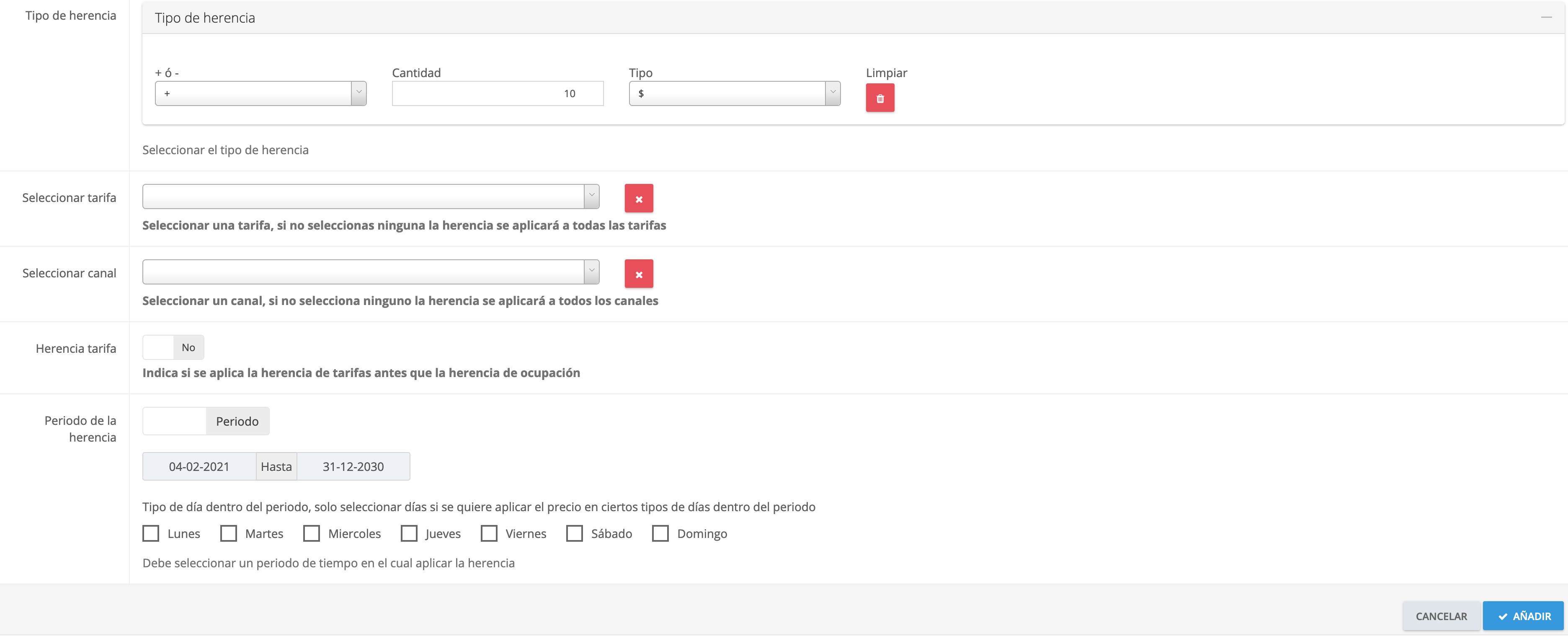 - Establecemos el Período en el que queremos aplicar la herencia (suelen ser períodos largos, para no tener que configurarlo anualmente).