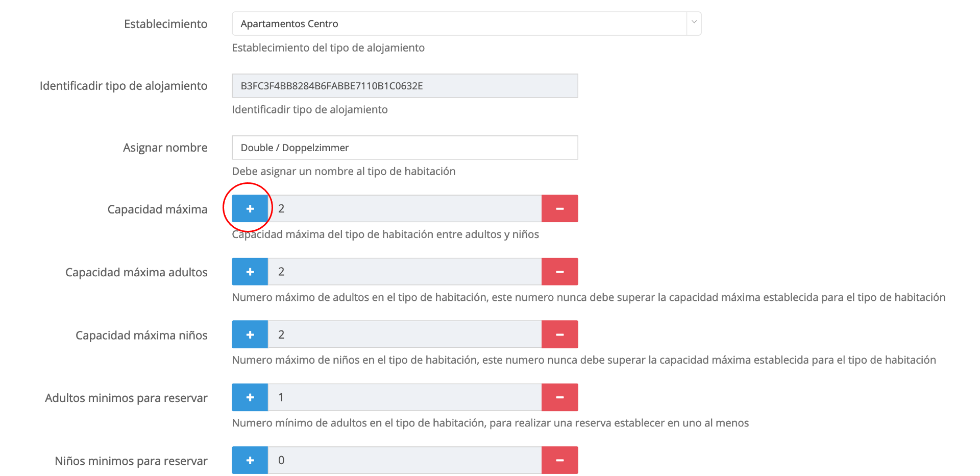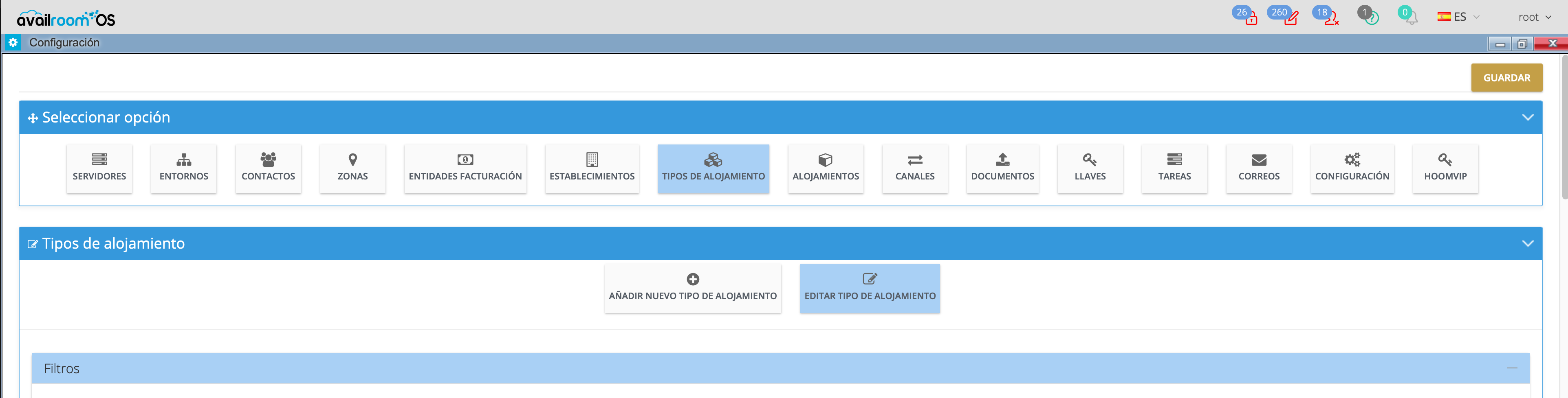 Entramos en Configuración -> Tipos de Alojamiento -> Editar Tipo de Alojamiento