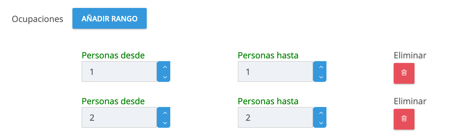 En este ejemplo, el apartamento tenía capacidad de 2 pax máximo segmentado de 1 a 1 y de 2 a 2: