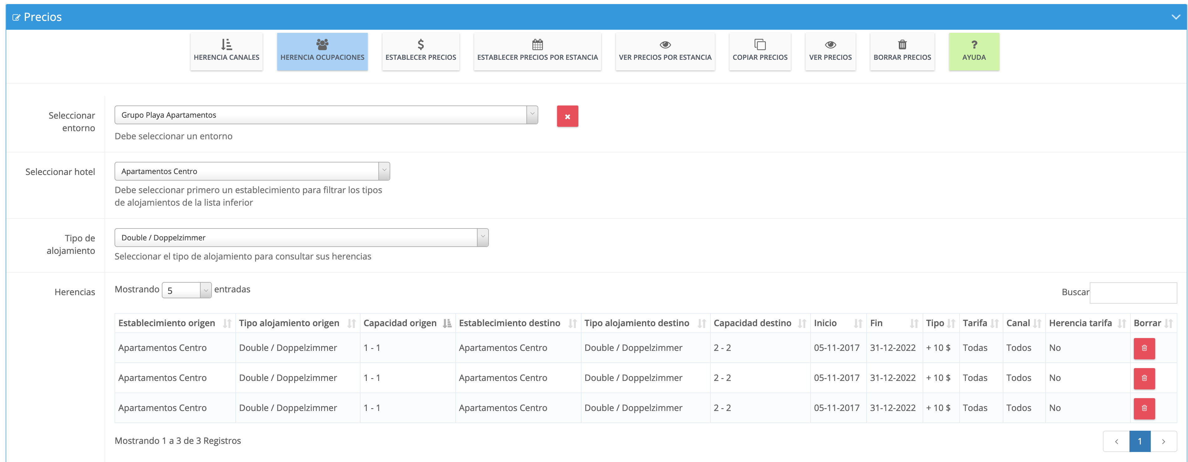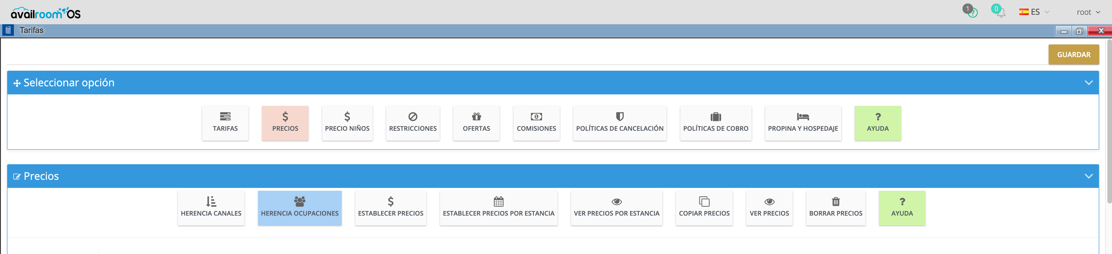 Para ello vamos a Tarifas -> Precios -> Herencias ocupaciones