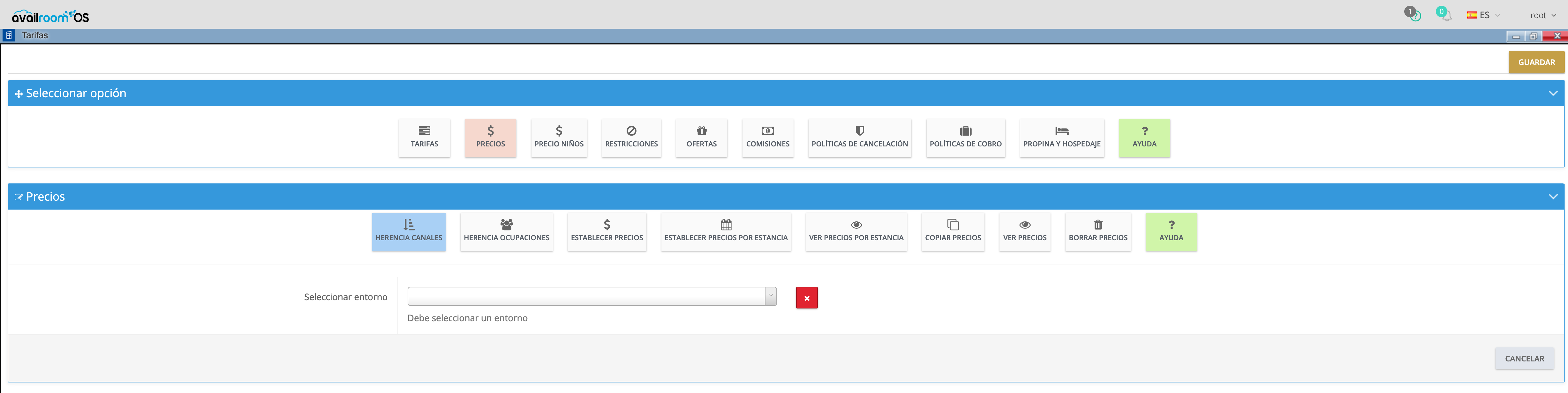 AvailRoom funciona con un sistema de herencias, ya sea para precios como para restricciones.