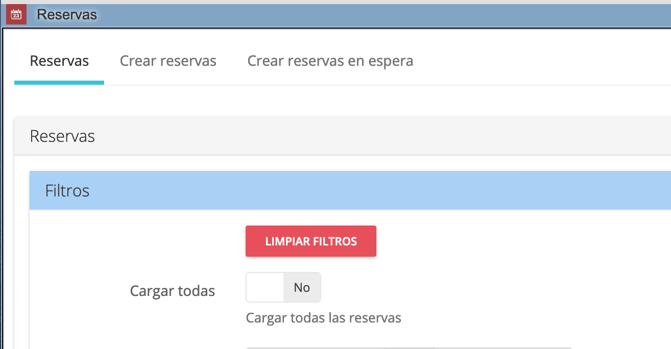 En los filtros debemos activar el botón Cargar todas las reservas: