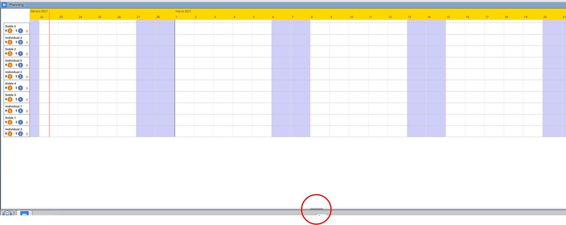 Abrimos el planning, y en la parte inferior desplegamos en menú con la linea gris: