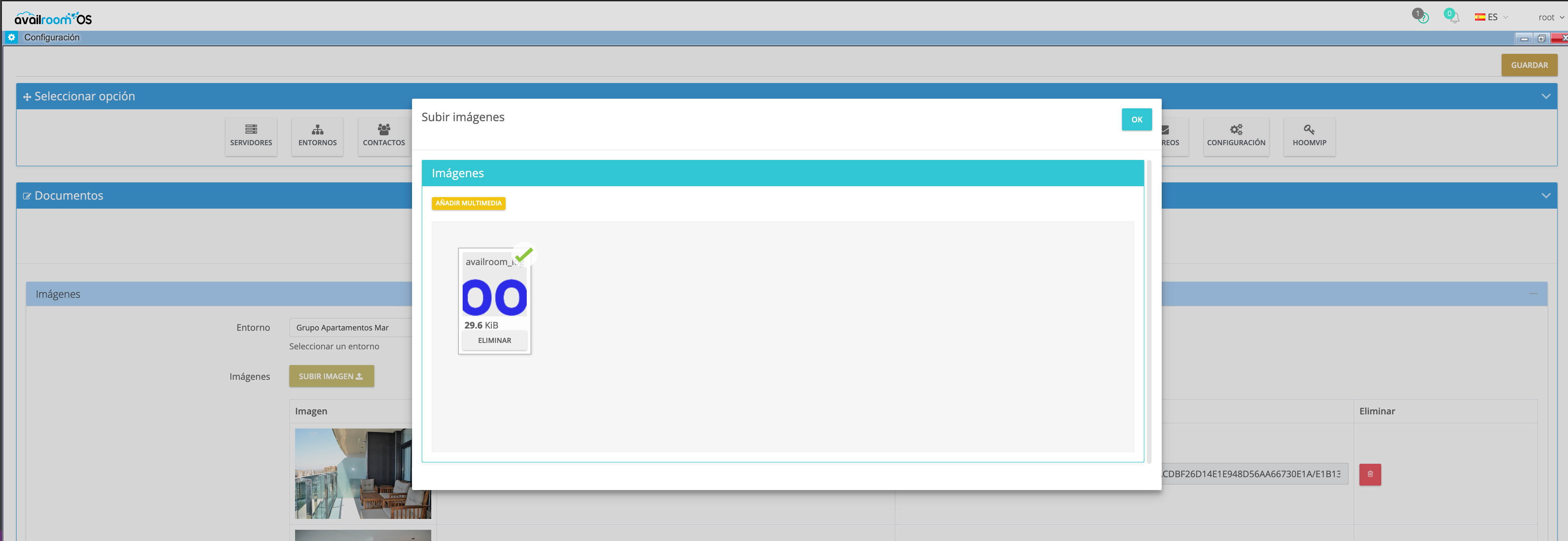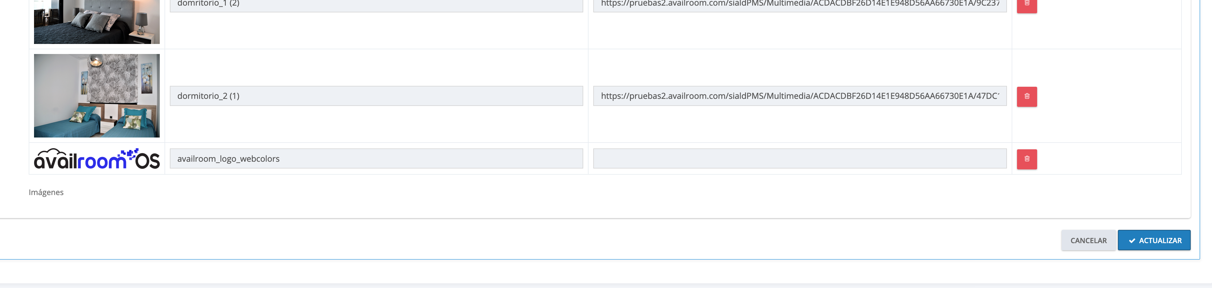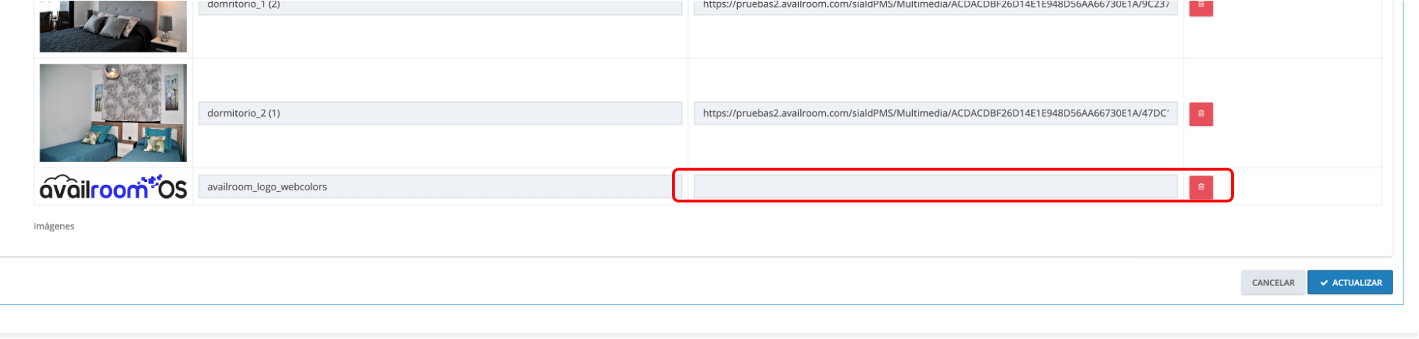 En este caso vamos a hacer un ejemplo con una imagen del logo de AvailRoom, por lo que elegimos la opción Imágenes y pulsamos Subir imagen.
